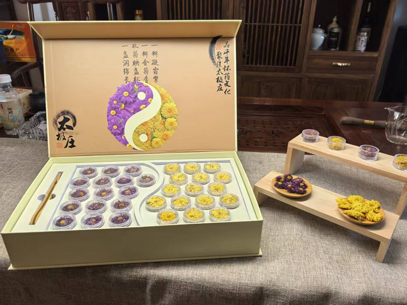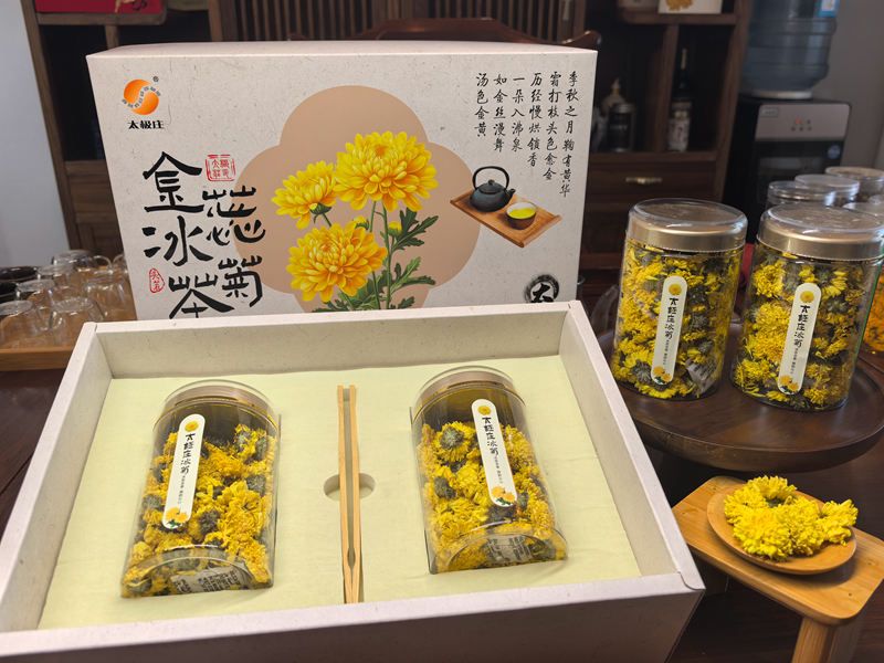 金絲貢菊(桶裝)、凝霜紫菊(桶裝)、太極莊冰菊(桶裝)